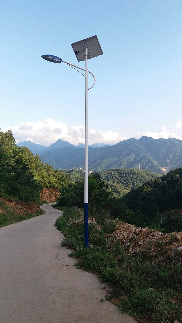 太陽能路燈是采用晶體硅太陽能電池供電,免維護閥控式密封蓄電池(膠體電池)儲存電能,超高亮LED燈具作為光源,并由智能化充放電控制器控制,用于代替傳統公用電力照明的路燈。無需鋪設線纜、無需交流供電、不產生電費;采用直流供電、控制;具有穩定性好、壽命長、發光率高,安裝維護簡便、安全性能高、節能環保、經濟實用等優點。可廣泛應用于城市主、次干道、小區、工廠、旅游景點、停車場等場所。產品部件燈桿結構:鋼質燈桿及支架,表面噴塑處理,電池板連接采用用防盜不銹鋼螺絲。
